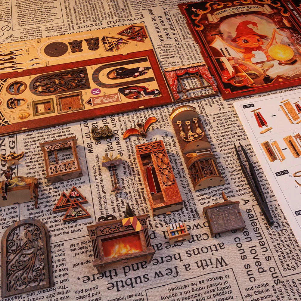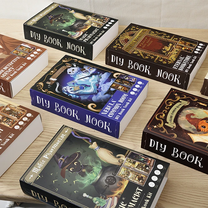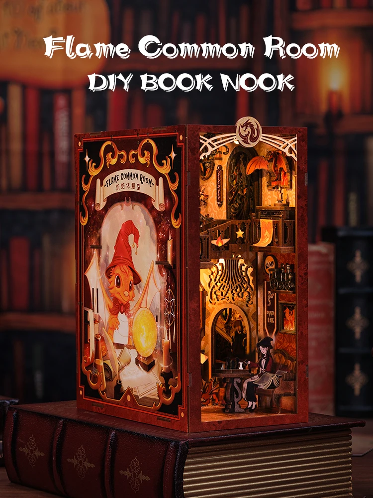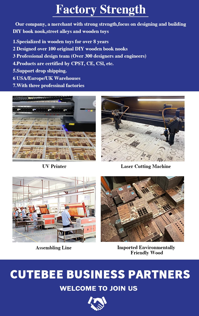 CuteBee Handmade Craft 3D Wooden Puzzle Bookshelf Decor Diorama DIY Book Nook Kit with LED Light Book Nook Miniature Dollhouse