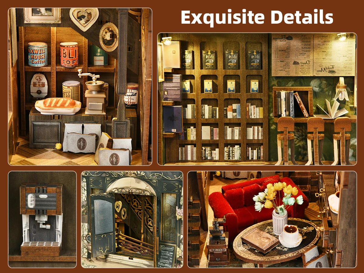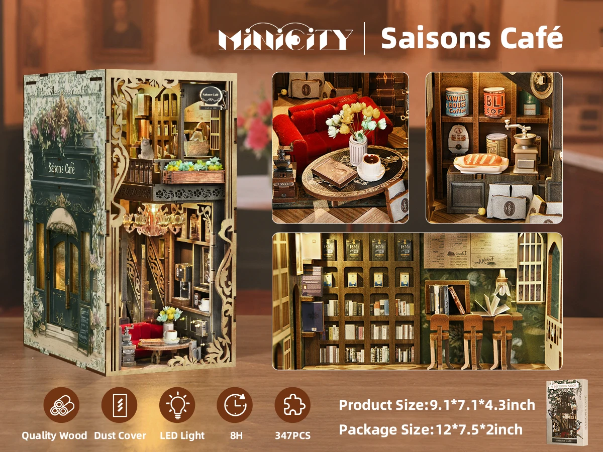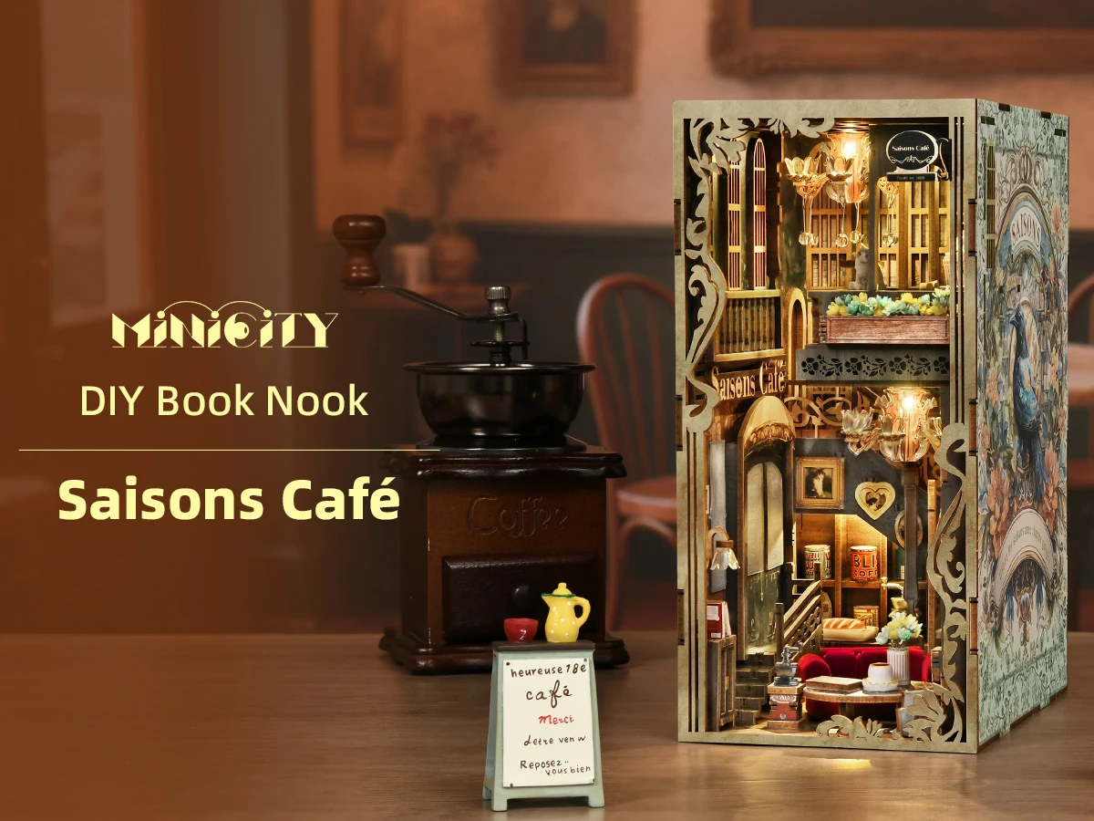 Minicity Book Nook Kit - DIY Miniature House Coffee Shop Dollhouse Kit for Adults and Teens