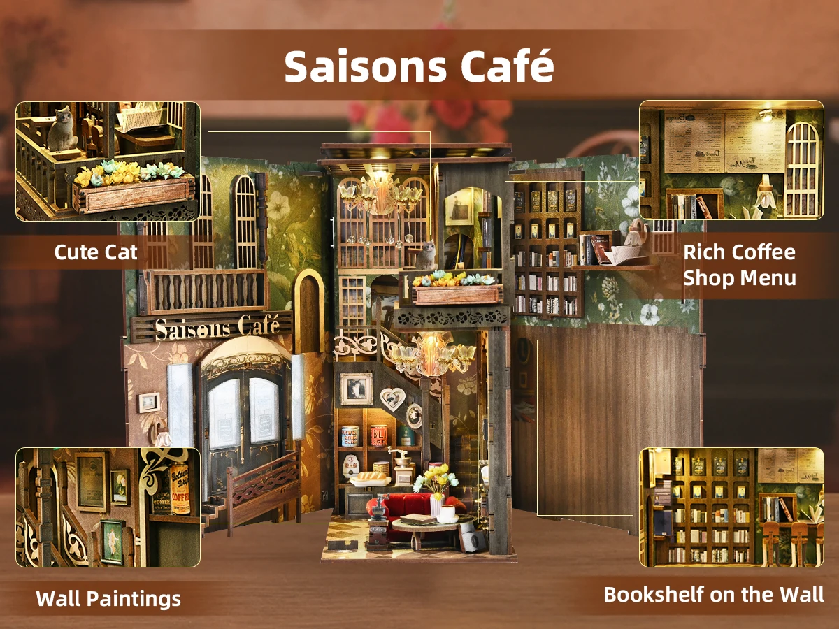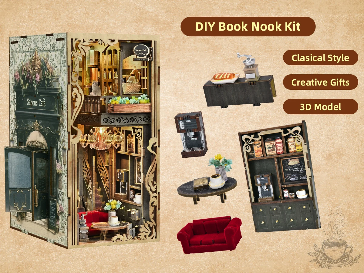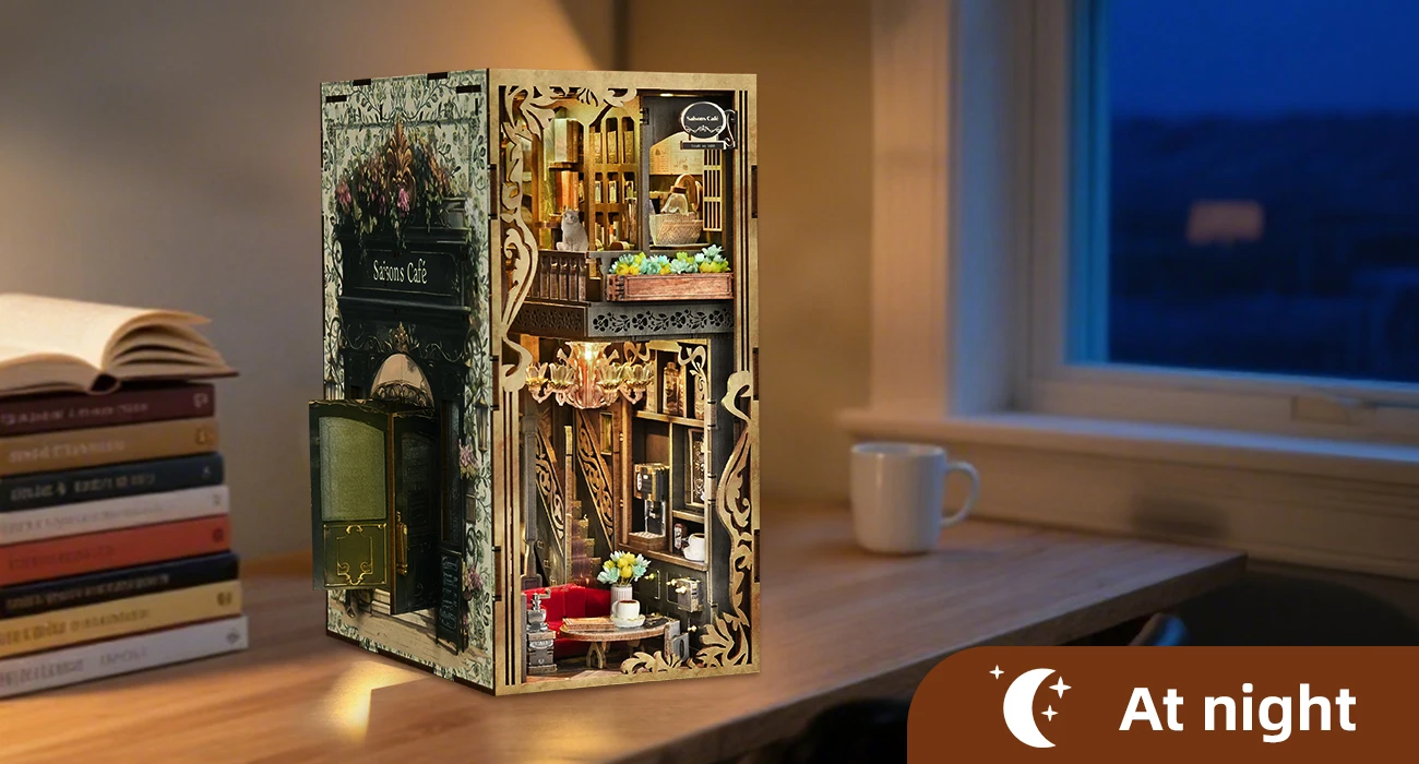 Minicity Book Nook Kit - DIY Miniature House Coffee Shop Dollhouse Kit for Adults and Teens